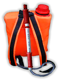 Емкость ранцевого лесного огнетушителя "Ермак" состоит из мешка резинового МЛО-6М производства ОАО "Уфимский завод Эластомерных материалов, изделий и конструкций (ОАО "УЗЭМИК") (по мнению большинства работников лесного хозяйства на сегодняшний день - лучшая емкость для ранцевых огнетушителей). РЛО Ермак оснащен широкими регулируемыми ремнями, изготовленными из пластичного материала с мягкими краями, чехлом из прочной ткани сигнального цвета со встроенной теплоизолирующей прокладкой, изготовленной из материала "GERMAFLEX" на основе пенополиэтилена и карманами для гидропульта и пенообразующей насадки. Горловина с сеткой и крышкой, которую можно использовать как мерный стакан - объем 180 мл, для дозирования пенообразующей жидкости. Пенообразующая насадка, позволяет работать со всеми имеющимися видами пенообразующей жидкости. Гидропульты всех моделей РЛО "Ермак" имеют повышенную плавность и легкость хода |